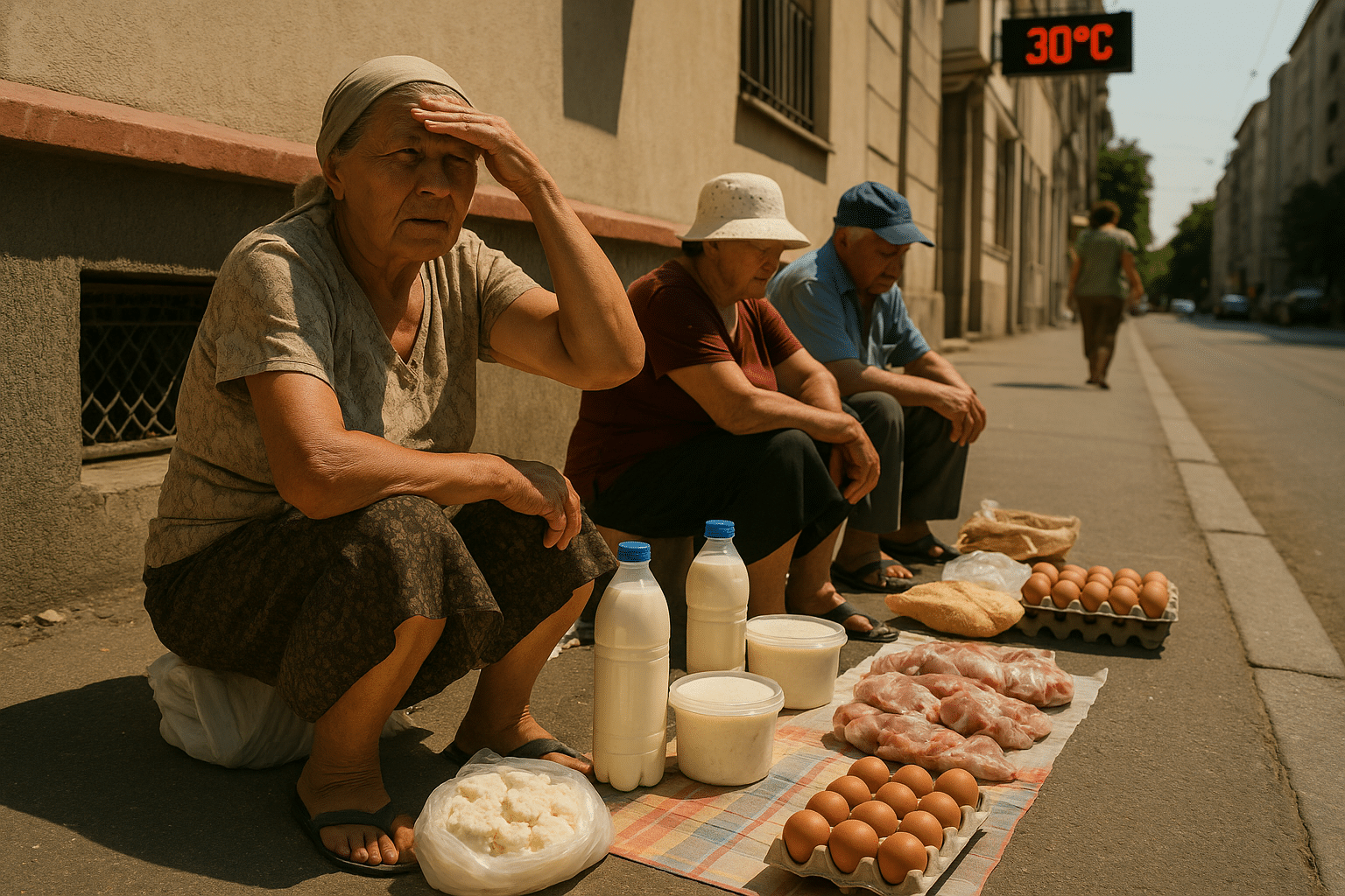 În plin sezon canicular, trotuarele din mai multe orașe ale Republicii Moldova s-au transformat în piețe improvizate. Producători locali vând carne, ouă și lactate direct de pe asfalt, sub soarele arzător, fără frigider, fără protecție sanitară. Temperaturile de peste 30°C transformă produsele perisabile în adevărate bombe alimentare.